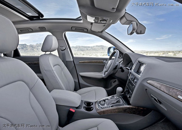 Q5的内饰还是照顾大多数国内消费者口味的,豪华和大气。实木的装饰条和外围又用镀铬的金属亮条进行包裹,四辐的方向盘跟A4一样,而方向盘上的换挡拨片增加了运动的激情。第三代MMI操作系统,新增的硬盘驱动式导航系统可提供二维和三维立体导航,在英文操作界面下也支持路况中文标识。