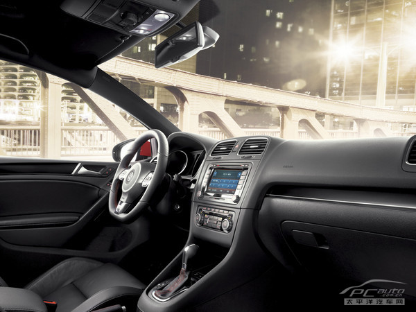 在方向盘的三个轮辐上也镶嵌有铝制金属。新车中控台及其它按钮均进行了重新设计,形状新颖,皮革般的质感,其中平底的设计也许只是为了使车内更加完美。在内饰间的接口处,换档杆底部,手刹处,运动座椅等地方均使用了GTI独有的红色缝线。