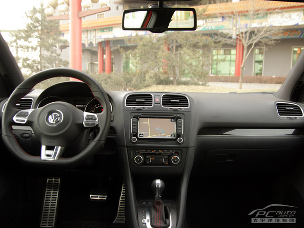 黑色依然是GTI内饰的标准配色,布局与普通版车型没有区别,大量运用银灰色的金属装饰件让整个内饰风格并不沉闷。 GTI专属的三幅运动方向盘绝对是内饰部分的最大看点,造型上颇具F1赛车风格,表面采用打孔真皮覆盖,手感出色。除了金属装饰和多功能按键,方向盘后方的换档拨片让GTI的车主感受到更多的驾驶乐趣。