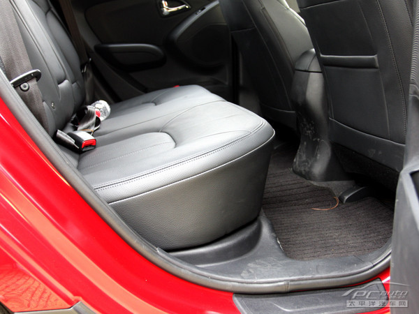 ix35车身的尺寸方面长宽高分别达到4420/1820/1690mm,突破常规界限,整体尺寸同级车中相对较大。其中轴距达到2640mm,比CRV的2620 mm具有一定优势,整体后排空间感受也较为宽敞。另外,由于车身较高,所以前后排的头部空间都相当宽裕,并且座椅设计,前排座垫很宽大,且呈扇形,乘坐感觉比较舒适。对于以自驾为主的人来说,可以说是一个不错的选择。