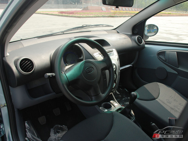 F0活力风格内饰,做工精细。中控台布置简洁,音频播放机与空调调节区巧妙交融,三个空调调节旋钮成一字形垂直排开,简洁美观。组合仪表采用白色LED指针,与蓝色背光实现了高清晰度的识别。仪表的随动式设计,可使方向盘在上下调节时仪表随之调整,避免出现显示盲区。中央储物盒,前排左右各设有杂物箱,使得空间得以充分利用。赛车风格的黑色座椅时尚动感,座椅的包裹性很好,符合人机工程学原理,可谓小车大享受。F0的一大亮点正是其所搭载的BYD371QA全铝高性能环保发动机,该款发动机采用德国博世节油控制系统,升功率达到50千瓦,直逼1.3L发动机,全铝材质大大减轻了车声重量,节能省油,经权威机构测试,F0曾以百公里最低油耗仅3.3升的成绩,一举夺得中汽协1.0L车型节油测评冠军,成为小排量车中名副其实的“节油王”。