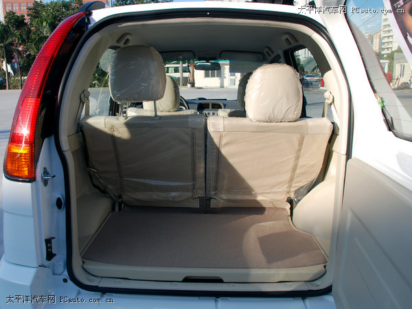 由于车阵宽度只有1555mm,所以众泰2008的后排恐怕也只能容得下两个成年人,这点从他5/5分折的后排座椅就能看出来,不过座椅放倒之后的储物空间还是相当平整的,打开后备厢盖板之后下面大小不同的储物槽也相当实用。