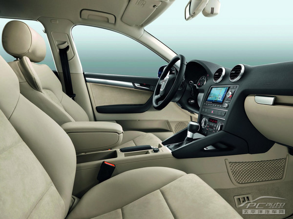 内饰上没有太多变化,还是一贯的奥迪范儿,整体风格务实大于时尚,做工和用料也自不用担心。圆圆的空调出风口很像TT,仪表布局则更像A4,和上一代A3相比,只是用了更多的金属装饰条。在仪表的中央,除了传统的瞬时油耗显示外,换挡提示系统也加入到了A3的行车电脑之中。通过分析车速、发动机转速和瞬时油耗,给出合理的换挡提示,以帮助驾驶者以最经济的方式驾驶车辆。MM I系统的控制键偏向副驾一侧,驾驶者则可通过真皮方向盘的多功能键来控制,前排乘客都得到了很好的照顾。带DVD的翻转式液晶屏,背面有两个卡槽,从屏幕下方标识的英文名称来看,可实现的功能有蓝牙电话和导航。其他配置上,例如自动大灯、ESP、自动空调、停车辅助系统和10声道Bose音响等,A3 Sportback做得也毫不含糊。