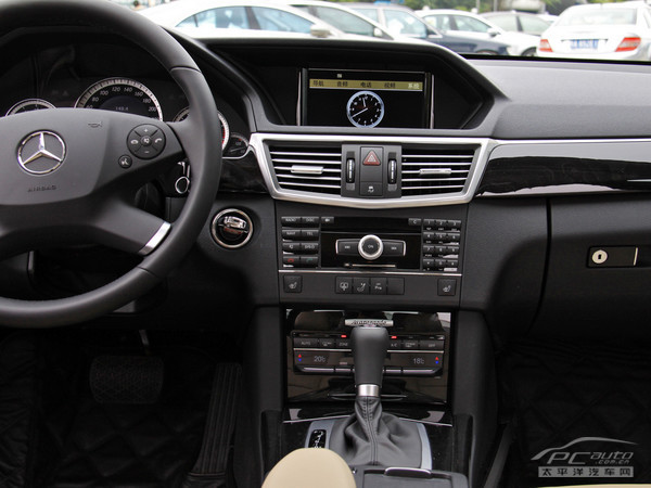 内饰设计也是新一代奔驰E级车换代的重点,由于增加了Comand多媒体系统,这也使得设计师在内饰的设计上更多地考虑到了大屏幕液晶显示屏和Comand操作按钮的设计上,内饰上甚至还增加了和S级相同的Cmand专用手托。由于Comand系统开发时间要晚于宝马的Idrive和奥迪的MMI,这也使得奔驰在Comand系统开发上少走了不少弯路。仪表板设计还是采用了奔驰传统的仪表造型,但增加了表盘型时钟等实用设计,和现在流行的炮筒式仪表盘相比,奔驰新一代E级车内饰方面则显得更加保守和复古,同时采用原木切片的木质内饰面料触感非常好,可以清晰地感觉到原木纹理不同所带来的凹凸感。