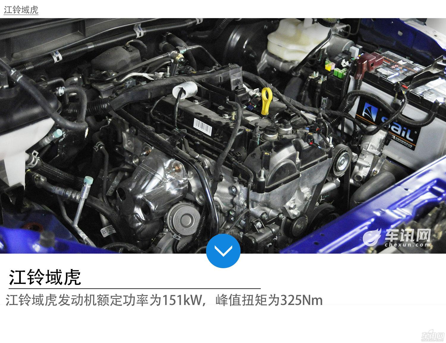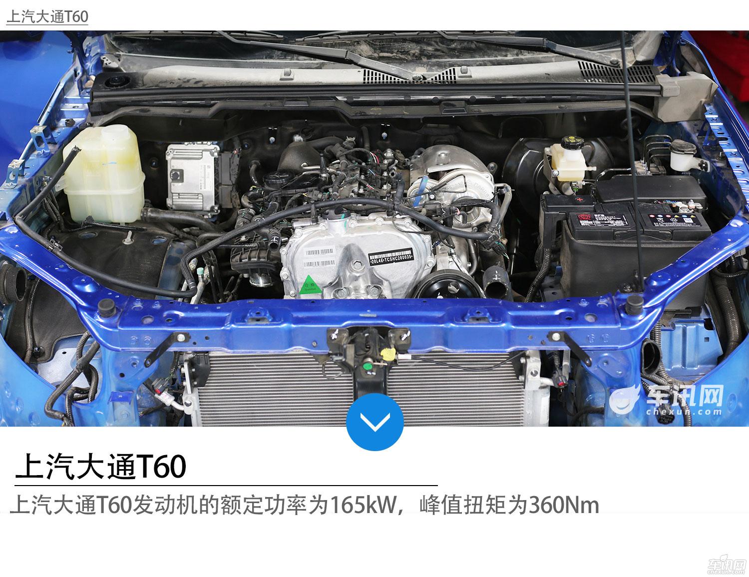 上汽大通T60发动机的额定功率为165kW,江铃域虎发动机额定功率为151kW;