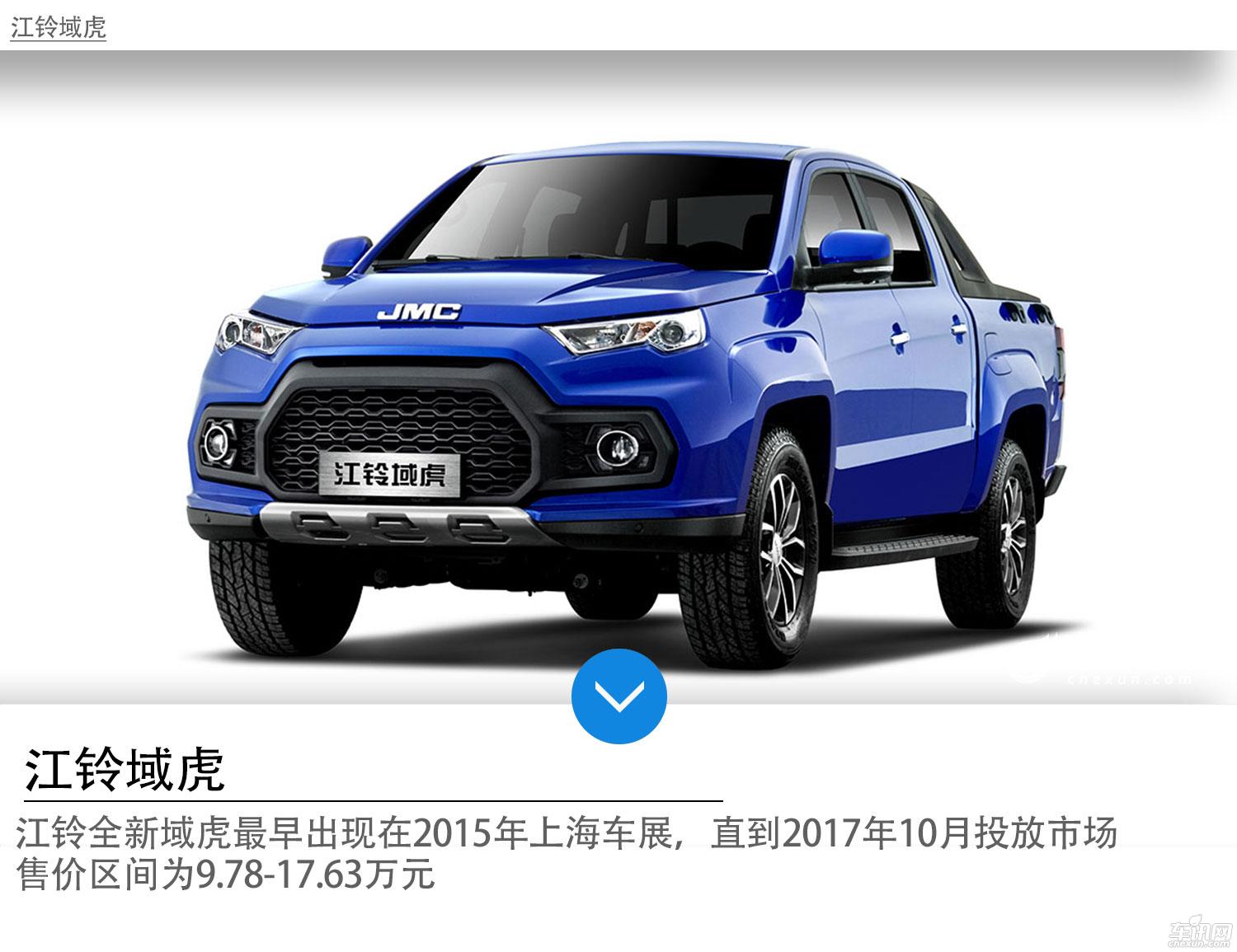 江铃全新域虎最早出现在2015年上海车展,直到2017年10月投放市场。售价区间为9.78-17.63万元。