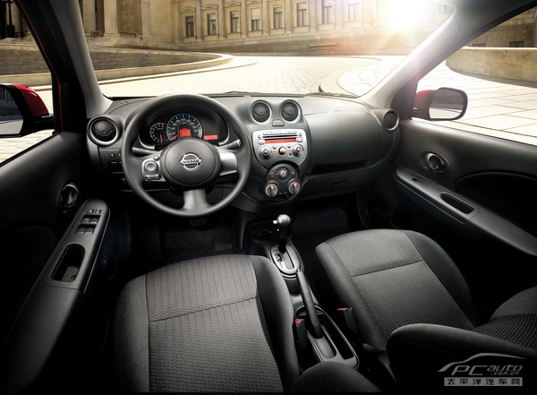 内饰方面,此款玛驰采用了黑色和灰色搭配的设计风格,整体感觉清新大方。功能比较简单线条很洋气。搭配上方向盘中央、中控台按键和空调出风口等处的圆形设计,让这款车显得十分的可爱。门的内饰采用了塑料材质的面板装饰,降低了这款车的整体档次。车门拉手较单薄,但是很Q,造型比较可爱。扬声器的外壳造型很有意思。一体式仪表盘造型比较简单,但给人的感觉不错。白色底光配合橘红色仪表针让消费者看任何信息都是一目了然。另外在中央数据屏处还可以看到车门关闭信息、档位情况和公里数等数据,使消费者对车内的情况了然于心。