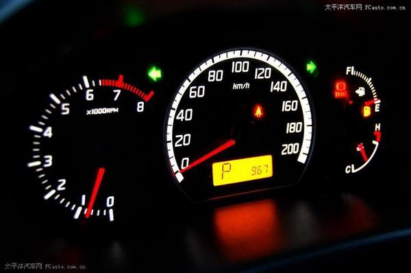 仪表盘的设计也是值得表扬的,简洁的两个大圆形表盘内各套有一个小表盘,数字与功能区分明确整个背景灯均采用了暖色调,橘黄色的背光以及红色指针的搭配非常漂亮!功能显示也比较丰富,行车电脑可以显示室外温度、总里程、本次里程等实用信息。