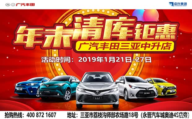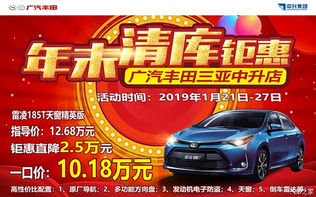 广汽丰田年末清库,特价车型30台,雷凌优惠高达2.5万元,可享受2年零利率,免