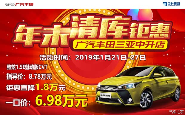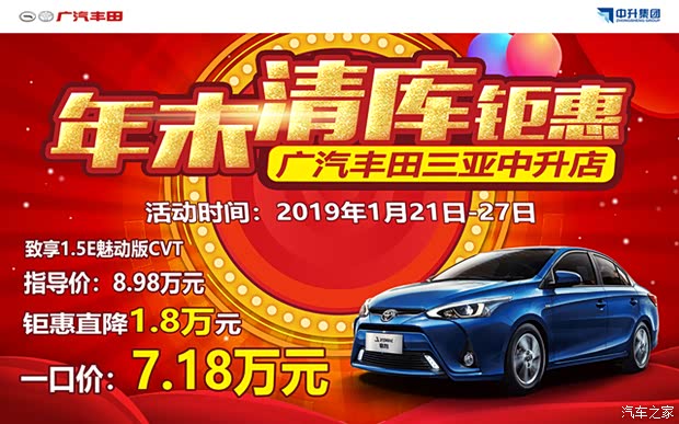 广汽丰田年底清库,特价车型30台,致享,钜惠高达1.8万元,2年免利息或4年低