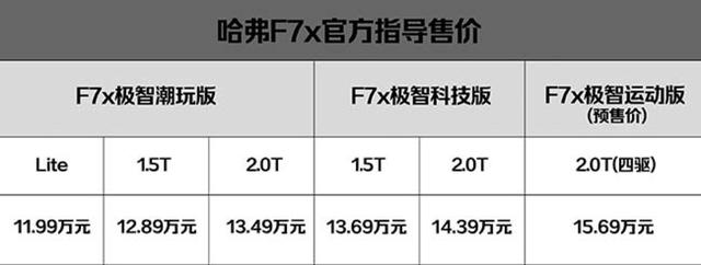 年轻人不是圈钱机器,青春不是金钱游戏,实用实惠的轿跑SUV才是他们的心头好。作为F7x产品矩阵的旗舰顶配,哈弗F7x极智运动版2.0T(四驱)车型原本可以用更高的价格匹配其在外观、动力和智能科技等领域的"过度研发",最终却仅以15.69万的价格开启预售,是15万价位唯一进入7秒俱乐部的轿跑SUV。这不但与进口、合资品牌轿跑SUV大相径庭,和同级国产轿跑SUV相比也颇令人意外。哈弗F7x极智运动版不同于其他轿跑SUV车型的自诩高端,反而以同级最具竞争力的定价彰显"最超值轿跑SUV"的威名。正因为深谙年轻之道,年轻用户才为哈弗F7x助威呐喊,哈弗F7x助力年轻人实现轿跑SUV梦想,彼此之间才会越走越近,甚至成为知己好友。更值得一提的是,哈弗F7x极智科技版是14万以内唯一搭载L2级别自动驾驶技术的轿跑SUV,领先同级,诚意满满。