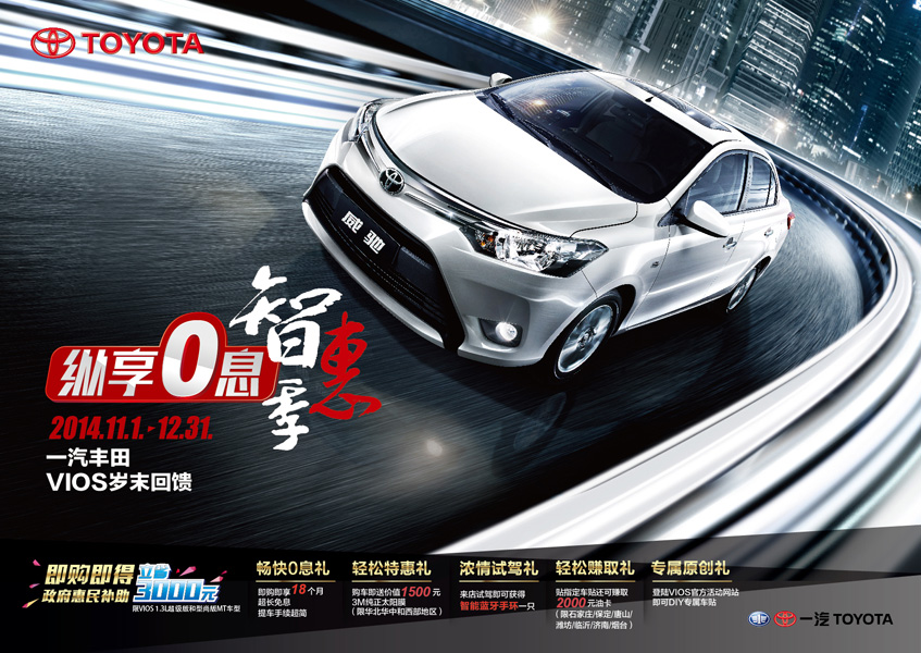 4、到店咨询丰田金融供车方式的即送丰田金融纪念品一份