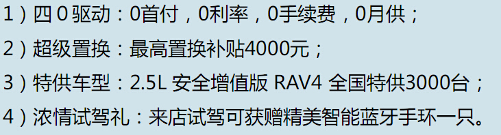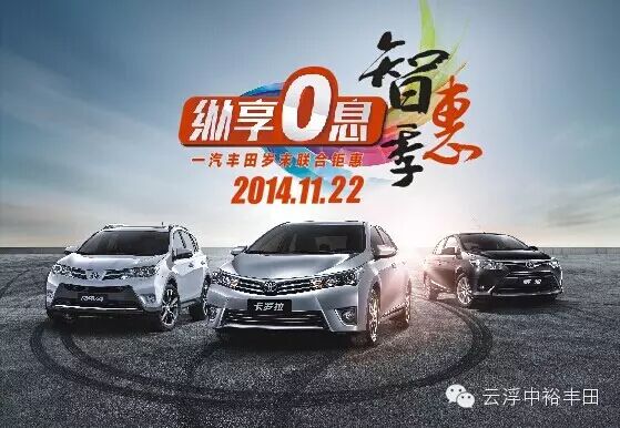 1、卡罗拉、威驰、RAV4、锐志、皇冠纵享0利息