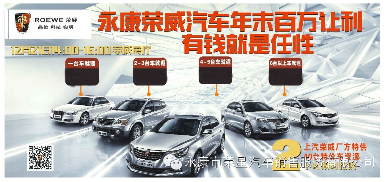 【太平洋汽车网 金华车市】永康荣威年末百万让利 有钱就是任性