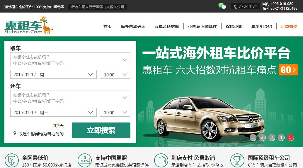 惠租车(huizuche.com)是一家专注国人海外自驾租车的预订服务平台,团队创立的初衷就是解决中国人境外租车痛点。