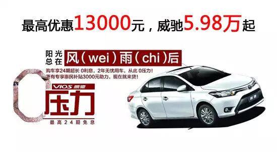 除花冠外,全系按揭0利率,其中威驰更享2年超长0利率
