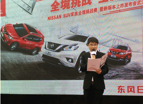 活动当天东风日产华中一区首席督导杨鹏先生出席活动并致辞:“这是一个属于年轻的时代,在席卷全球的消费浪潮中,年轻人将成为全球消费主力军,东风日产自2015年开始,就以“怒放年轻”为品牌口号,以“激情挑战”为品牌的核心精神,将品牌年轻化提升到企业的战略层面,率先一步成为时代青春力量的同行者。随着品牌年轻化战略的推进和深化,2016年东风日产也迈入了YOUNG NISSAN的2.0时代。这个时代更具个性和充满激情,而SUV作为东风日产最出众的主打产品,楼兰、奇骏、逍客共同组成最强SUV阵容,他们无一不是YOUNG NISSAN向2.0时代进化的排头兵。为此,东风日产将携楼兰、奇骏、逍客三款新版本车型联袂上市,为武汉的SUV市场注入新的活力。为武汉的消费者开启一种全新的生活方式。”
