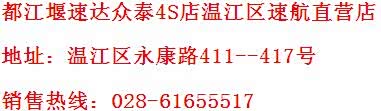都江堰速达众泰4S店!为了满足不同时间段购车的客户,也为了白天看车天气太热不方便出门的客户,现在开始夏季购车新模式——晚上来[GO!] 您可以晚上联系我们028-89747775而且有专车接送!(夜店模式:17:30-20:30)