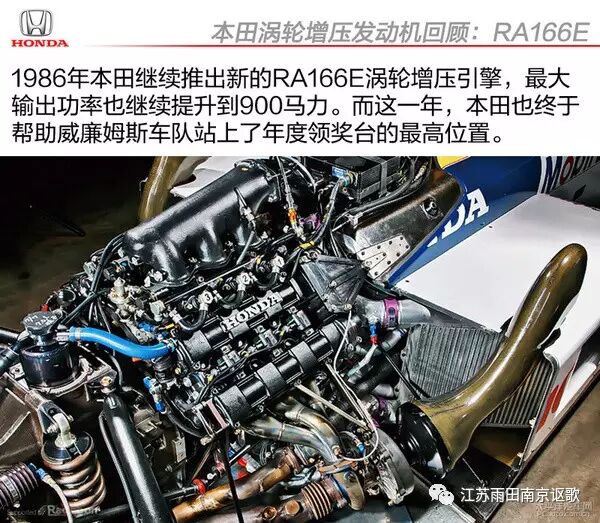 1966年本田继续推出新的RA166E涡轮增压发动机,这一次新发动机的最大输出功率在转速12500转时爆发,继续提升至900马力。而这一年,在本田涡轮发动机的帮助下,威廉姆斯车队站上了年度领奖台最高位置。