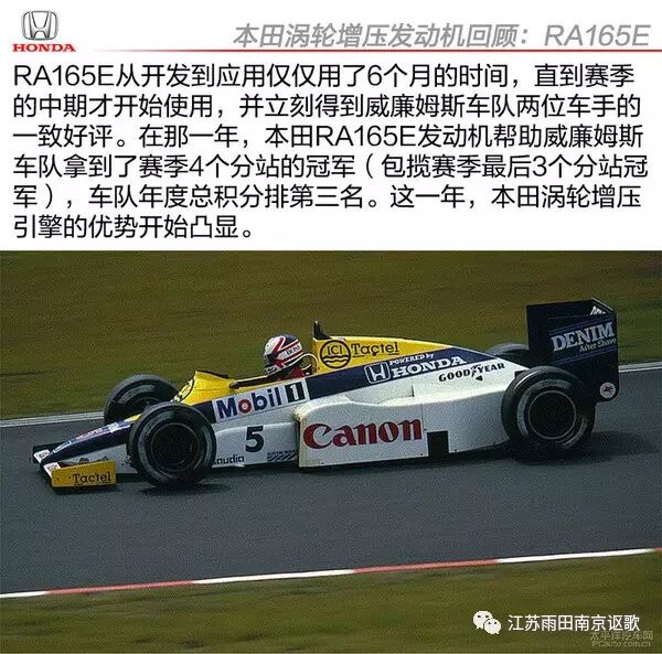 在F1辉煌的10年里,本田共推出6款涡轮增压发动机,每一款都在原来的基础上加以优化改进,而每一年本田都能带来惊喜,直到最后被国际汽联封杀,不得不再次退出F1赛场。