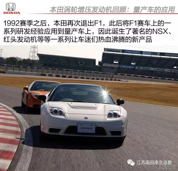 1992赛季结束之后,本田再次退出F1;在这10年间所累计下来的F1赛车发动机研发经验开始被应用在量产车里面,于是诞生了一系列让车迷听到就热血沸腾的技术和产品。例如红头机、i-VTEC可变气门正时和可变气门升程技术、NSX等均是出自那个年代。